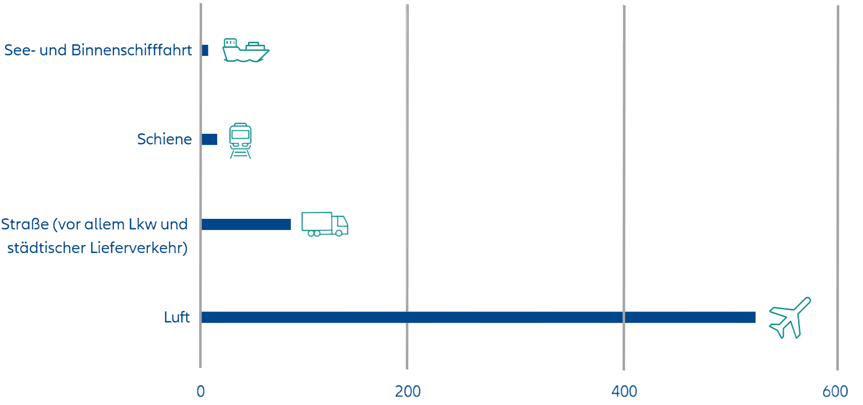 Abbildung 1: Globale CO2-Emissionsintensität im Güterverkehr (kg) pro Milliarde Tonnenkilometer im Jahr 2020