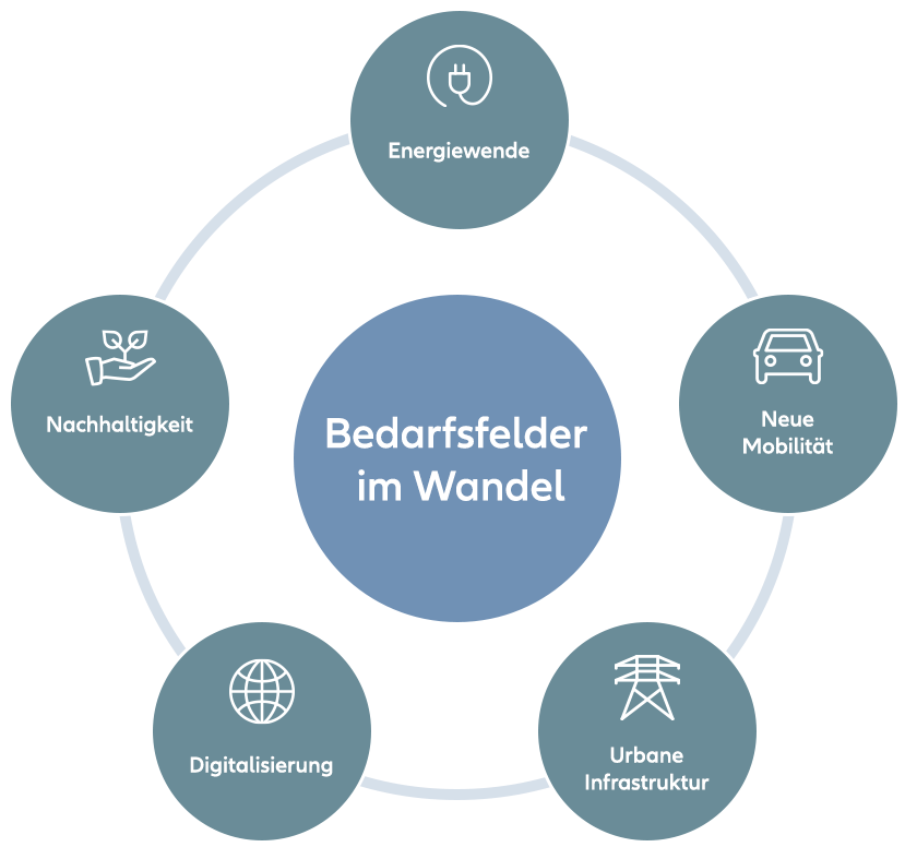 Die Energiewende, Elektromobilität, das Wachstum der Städte, Digitalisierung und der Trend zu mehr Nachhaltigkeit: Diese Trends zeigen, wie stark diese Sektoren im Wandel sind und wo sich Möglichkeiten für Investoren ergeben.