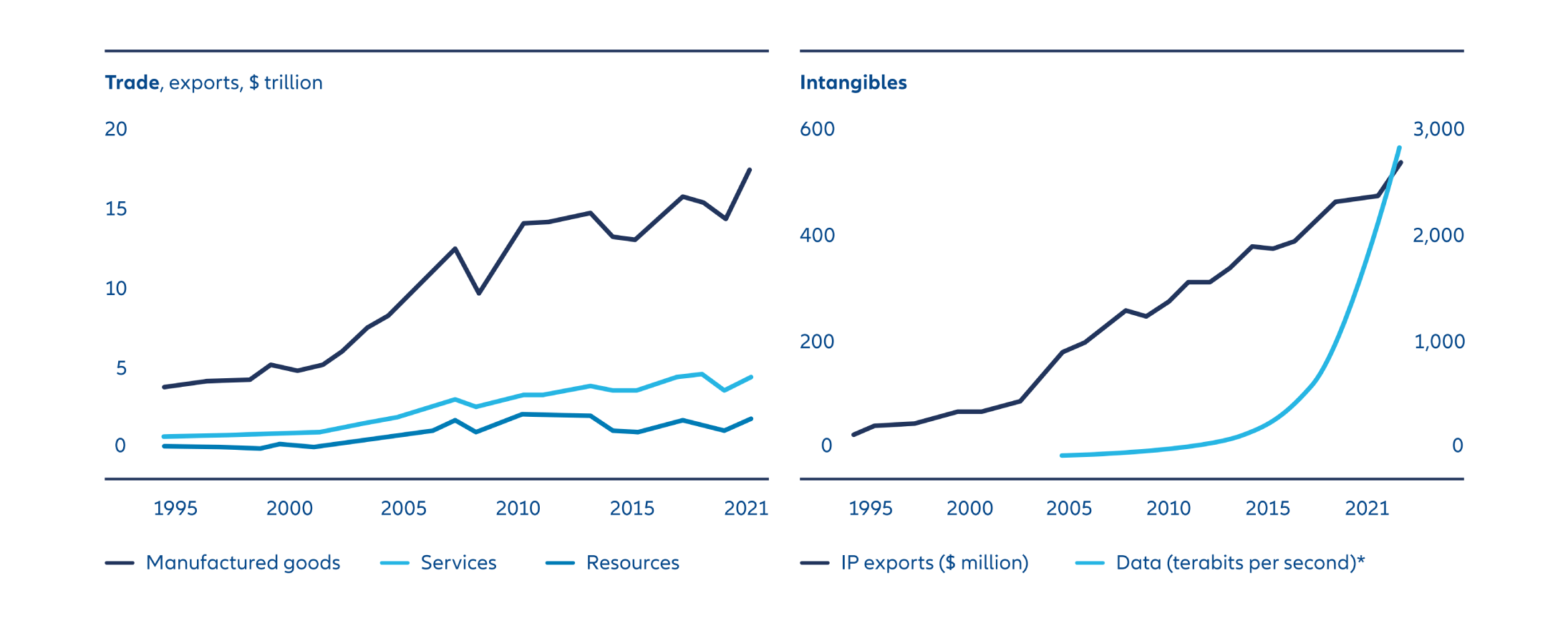 Exhibit 1: Exchange of IP and data surging even as trade growth slows