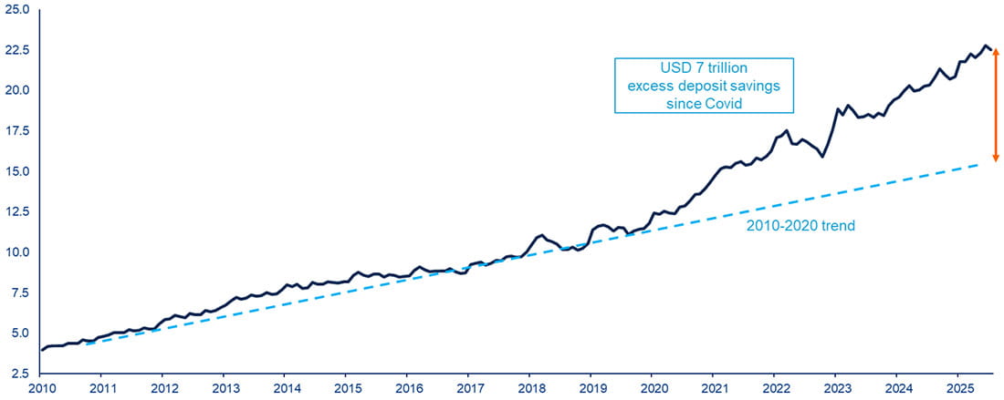 Chart 2: Household bank deposits in mainland China (USD trillion)