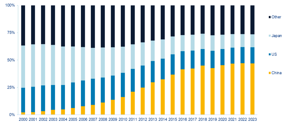 - This is reinforced by global patent figures where China’s share has steadily increased over the last 15 years.5 Of course, not all patents have value or can be commercialised. But the number of patents granted still gives a good sense of overall commitment to innovation and the pursuit of technological leadership.