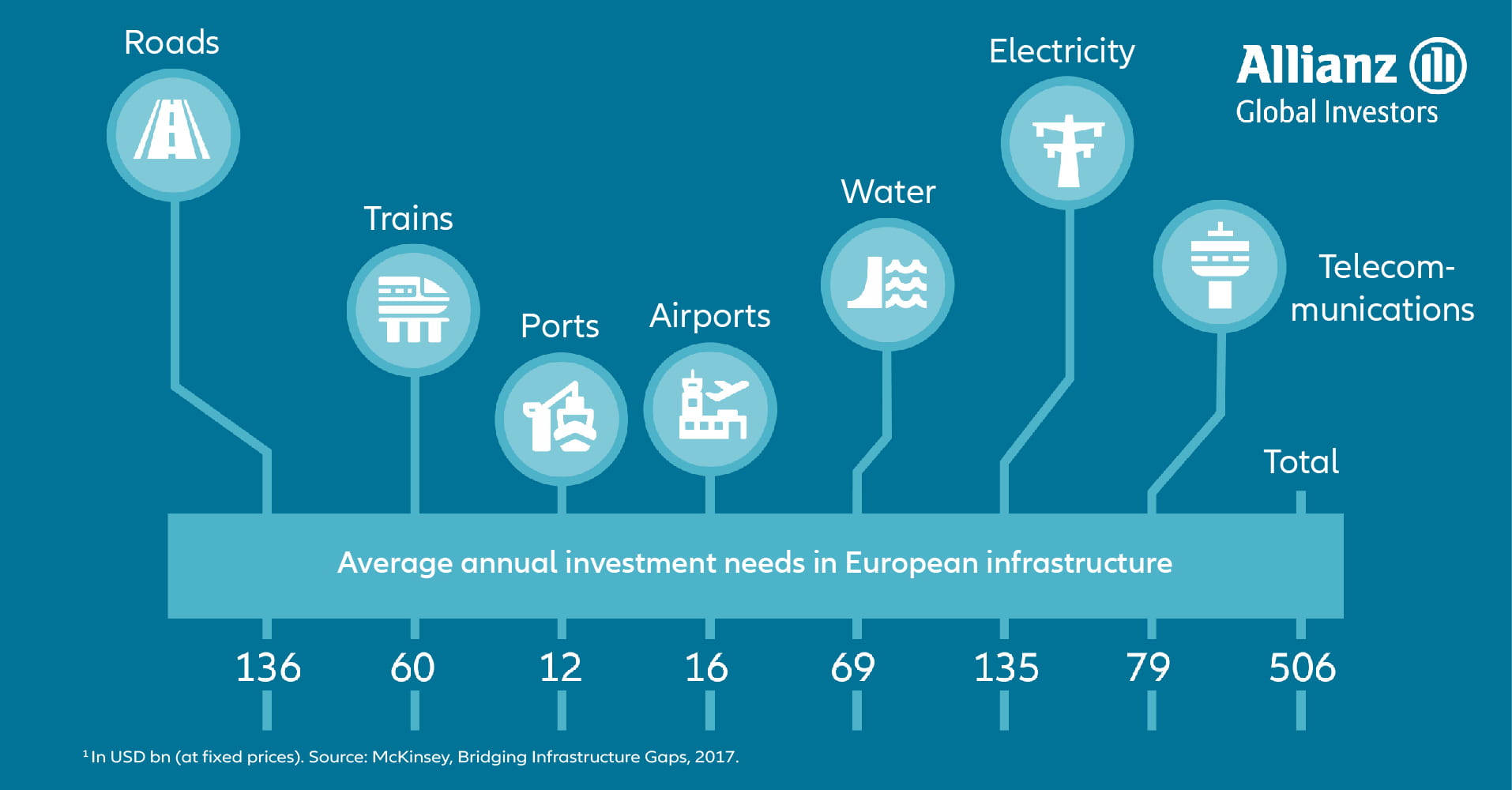 Every year, the fund’s target sectors alone lack public funds of around €42 billion1. This is around one-tenth of the total amount that needs to be invested in infrastructure – and opens up investment opportunities for long-term investors