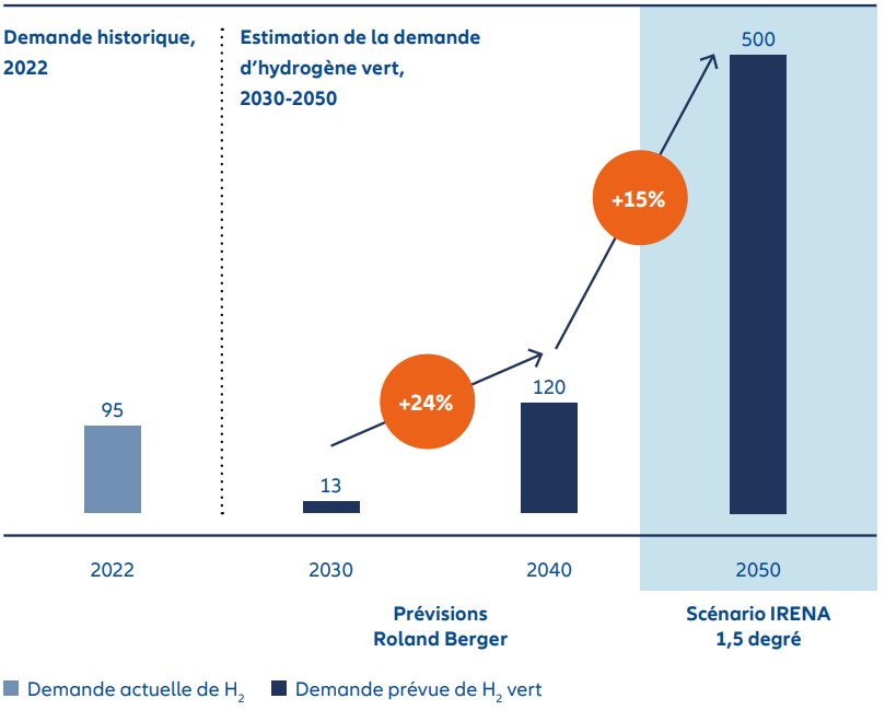 Image 3 : Estimation de la demande mondiale d’hydrogène vert (mtpa*)