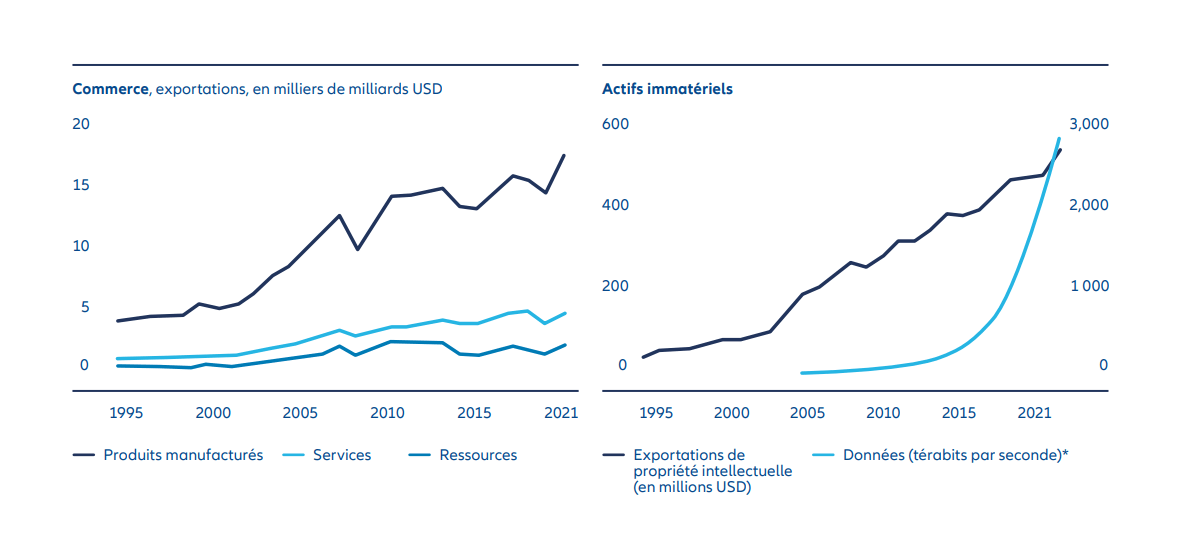 Graphique 1 : Malgré le ralentissement de la croissance des flux commerciaux, les échanges de propriété intellectuelle et de données sont en plein essor